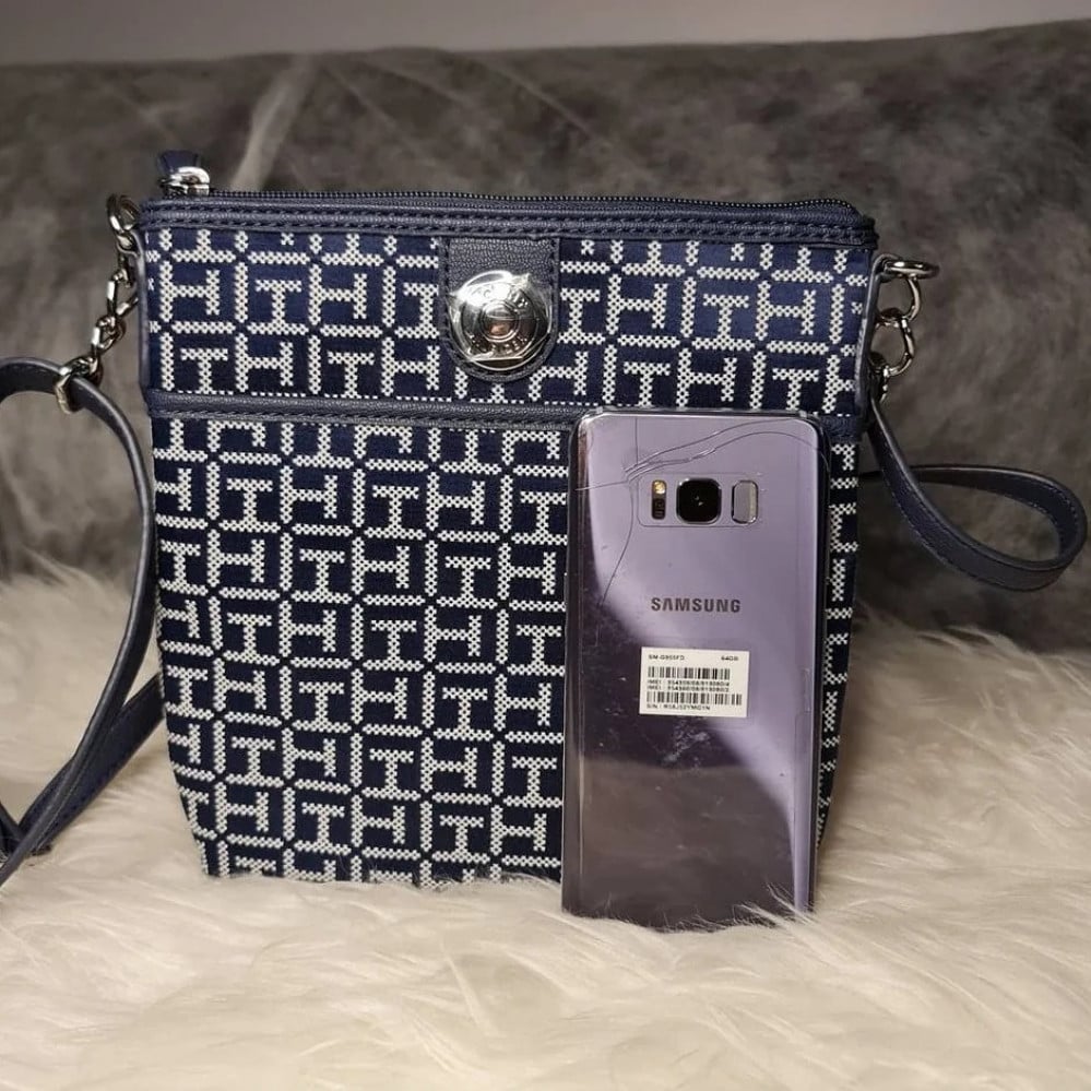 شنط تومي الحجم كبير مع سير قصير يتعلق بالكتف^^