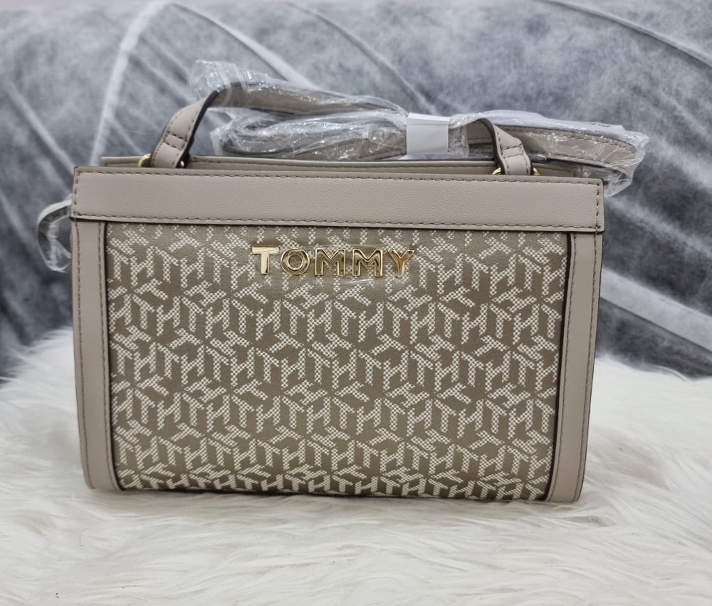 شنط تومي الحجم صغير مع سير طويل بني وبيج ^^